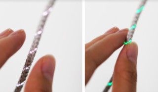 | I/O Braid is an interactive textile cord with embedded sensing and visuals. It senses user's proximity, touch, and twist, while embedded fiber optics enable spiraling light feedback. |