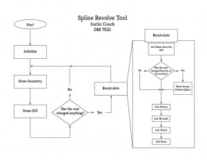 Finally got my flow chart done. This is still fairly basic, but gets the idea across. The flow is simple, the complexity happens inside of the functions.